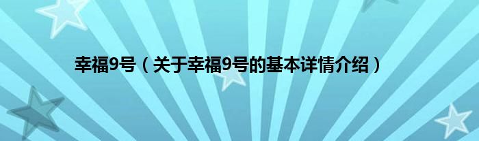 本文关于幸福9号的基本详情介绍就讲解完毕,希望对大家有所帮助。