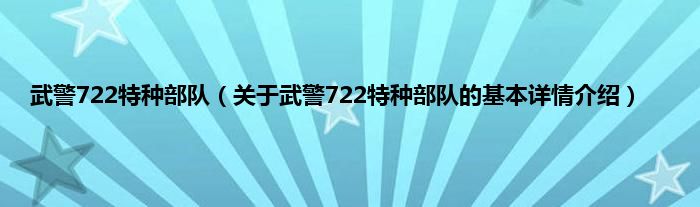本文关于武警722特种部队的基本详情介绍就讲解完毕,希望对大家有所帮助。