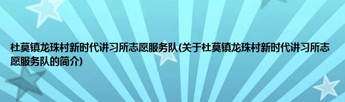 杜莫镇龙珠村新时代讲习所志愿服务队(关于杜莫镇龙珠村新时代讲习所志愿服务队的简介)