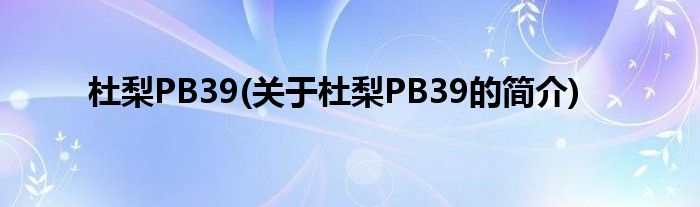 大家好,杜梨PB39,关于杜梨PB39的简介很多人还不知道,现在让我们一起来看看吧!