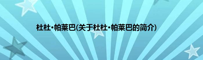大家好,杜杜·帕莱巴,关于杜杜·帕莱巴的简介很多人还不知道,现在让我们一起来看看吧!