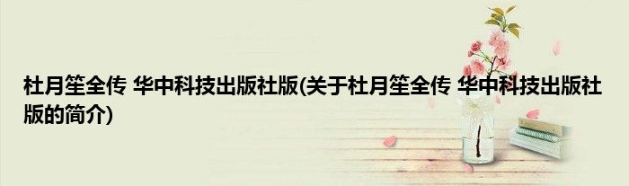 1、 《杜月笙全传(华中科技出版社版)》是2012-06-01在北京兴盛乐书刊发行有限责任公司出版的书籍。