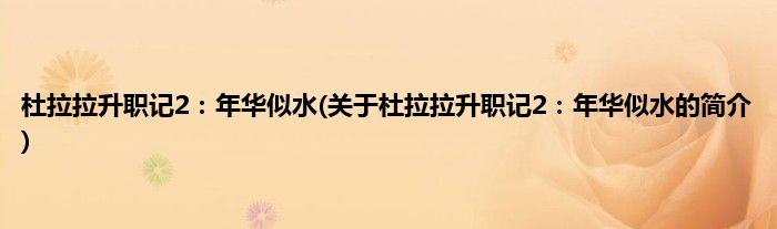 本文关于杜拉拉升职记2:年华似水的简介就讲解完毕,希望对大家有所帮助。