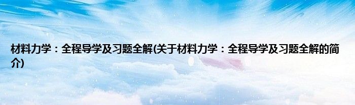本文关于材料力学:全程导学及习题全解的简介就讲解完毕,希望对大家有所帮助。