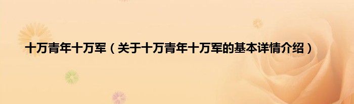十万青年十万军(关于十万青年十万军的基本详情介绍)