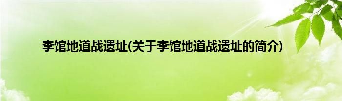 大家好,李馆地道战遗址,关于李馆地道战遗址的简介很多人还不知道,现在让我们一起来看看吧!