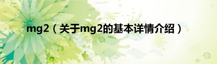 本文关于mg2的基本详情介绍就讲解完毕,希望对大家有所帮助。