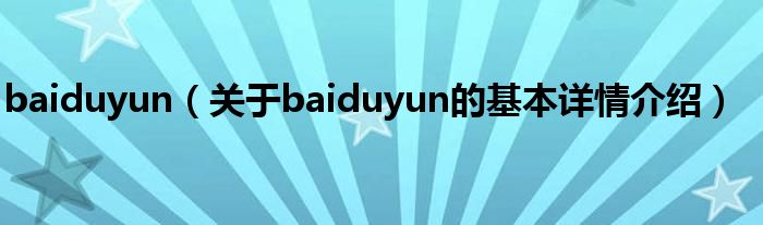 本文关于baiduyun的基本详情介绍就讲解完毕,希望对大家有所帮助。