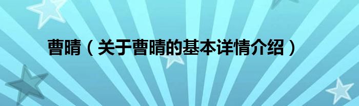 本文关于曹晴的基本详情介绍就讲解完毕,希望对大家有所帮助。