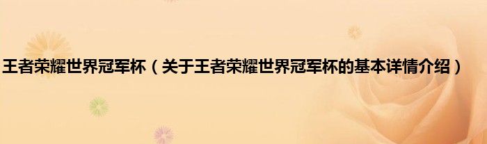 本文关于王者荣耀世界冠军杯的基本详情介绍就讲解完毕,希望对大家有所帮助。