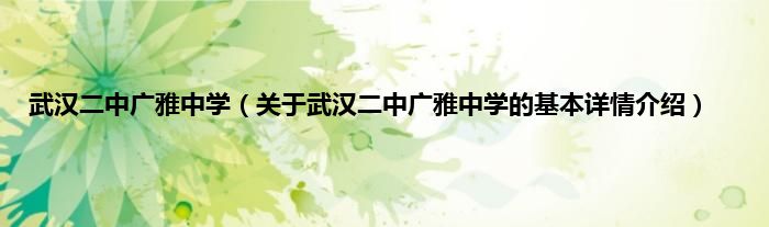 本文关于武汉二中广雅中学的基本详情介绍就讲解完毕,希望对大家有所帮助。