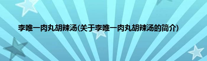 大家好,李唯一肉丸胡辣汤,关于李唯一肉丸胡辣汤的简介很多人还不知道,现在让我们一起来看看吧!