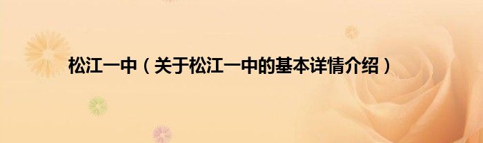 本文关于松江一中的基本详情介绍就讲解完毕,希望对大家有所帮助。