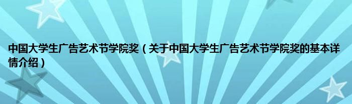本文关于中国大学生广告艺术节学院奖的基本详情介绍就讲解完毕,希望对大家有所帮助。