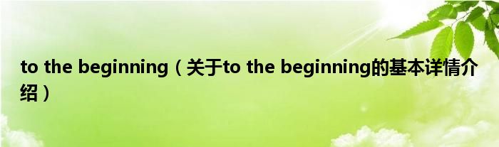 本文关于to the beginning的基本详情介绍就讲解完毕,希望对大家有所帮助。