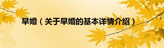 本文关于早婚的基本详情介绍就讲解完毕,希望对大家有所帮助。