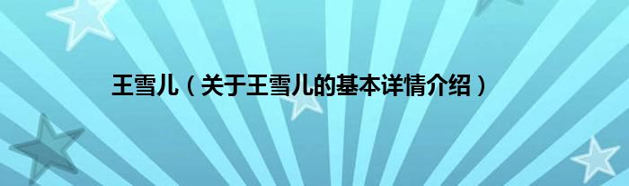 本文关于王雪儿的基本详情介绍就讲解完毕,希望对大家有所帮助。
