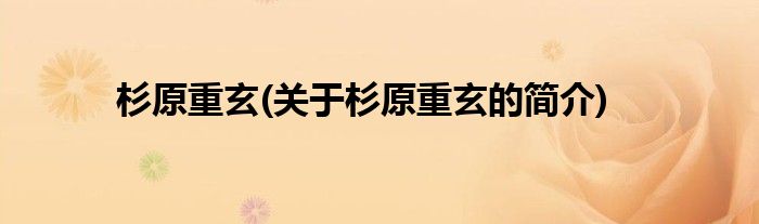大家好,杉原重玄,关于杉原重玄的简介很多人还不知道,现在让我们一起来看看吧!