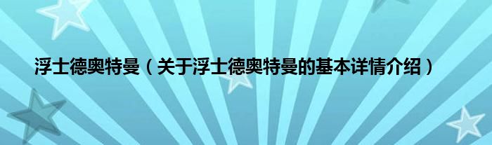 本文关于浮士德奥特曼的基本详情介绍就讲解完毕,希望对大家有所帮助。
