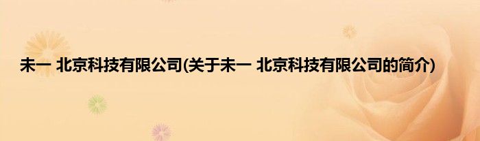 本文关于未一 北京科技有限公司的简介就讲解完毕,希望对大家有所帮助。