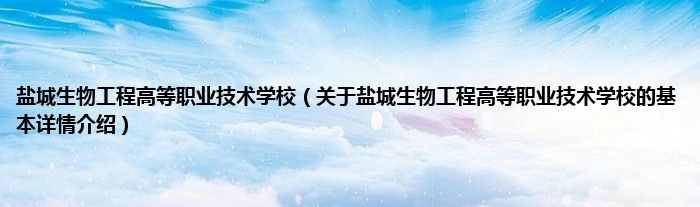 本文关于盐城生物工程高等职业技术学校的基本详情介绍就讲解完毕,希望对大家有所帮助。