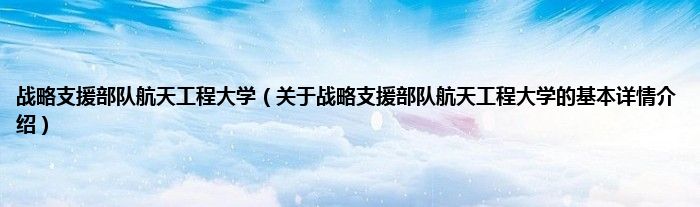 本文关于战略支援部队航天工程大学的基本详情介绍就讲解完毕,希望对大家有所帮助。