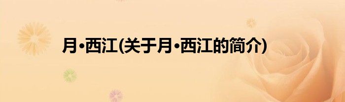 大家好,月·西江,关于月·西江的简介很多人还不知道,现在让我们一起来看看吧!