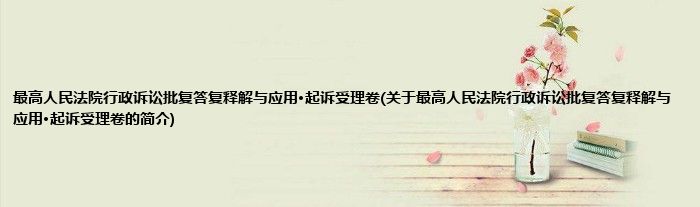 本文关于最高人民法院行政诉讼批复答复释解与应用·起诉受理卷的简介就讲解完毕,希望对大家有所帮助。