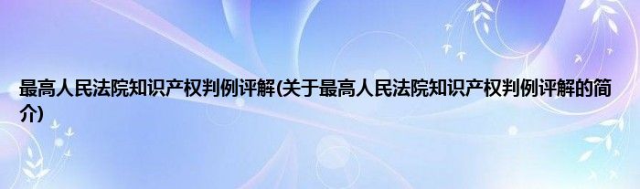 大家好,最高人民法院知识产权判例评解,关于最高人民法院知识产权判例评解的简介很多人还不知道,现在让我们一起来看看吧!