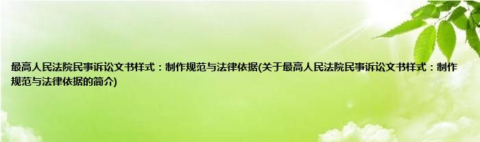 本文关于最高人民法院民事诉讼文书样式:制作规范与法律依据的简介就讲解完毕,希望对大家有所帮助。
