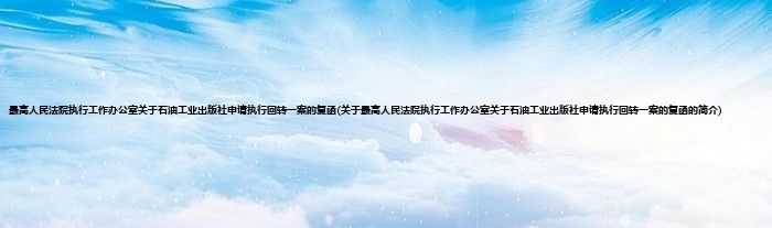 本文关于最高人民法院执行工作办公室关于石油工业出版社申请执行回转一案的复函的简介就讲解完毕,希望对大家有所帮助。