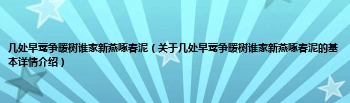 本文关于几处早莺争暖树谁家新燕啄春泥的基本详情介绍就讲解完毕,希望对大家有所帮助。