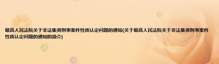 大家好,最高人民法院关于非法集资刑事案件性质认定问题的通知,关于最高人民法院关于非法集资刑事案件性质认定问题的通知的简介很多人还不知道,现在让我们一起来看看吧!