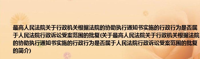 本文关于最高人民法院关于行政机关根据法院的协助执行通知书实施的行政行为是否属于人民法院行政诉讼受案范围的批复的简介就讲解完毕,希望对大家有所帮助。