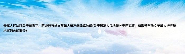 大家好,最高人民法院关于蒋家正、蒋淑芳与徐文英等人析产继承案的函,关于最高人民法院关于蒋家正、蒋淑芳与徐文英等人析产继承案的函的简介很多人还不知道,现在让我们一起来看看吧!