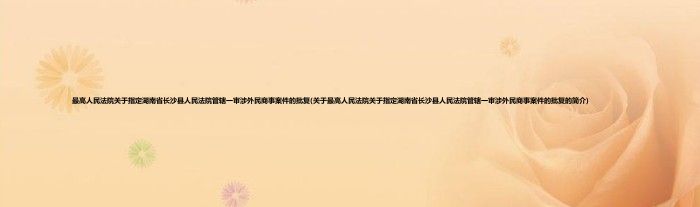 大家好,最高人民法院关于指定湖南省长沙县人民法院管辖一审涉外民商事案件的批复,关于最高人民法院关于指定湖南省长沙县人民法院管辖一审涉外民商事案件的批复的简介很多人还不知道,现在让我们一起来看看吧!