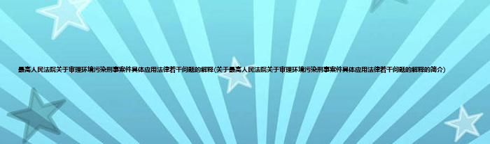 1、 《最高人民法院关于审理环境污染刑事案件具体应用法律若干问题的解释》是为依法惩治有关环境污染犯罪行为,根据刑法有关规定,就审理这类刑事案件具体应用法律的若干问题作出的解释。