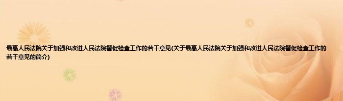 最高人民法院关于加强和改进人民法院督促检查工作的若干意见(关于最高人民法院关于加强和改进人民法院督促检查工作的若干意见的简介)