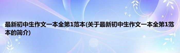 本文关于最新初中生作文一本全第1范本的简介就讲解完毕,希望对大家有所帮助。