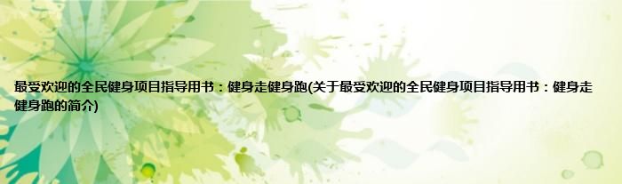 大家好,最受欢迎的全民健身项目指导用书:健身走健身跑,关于最受欢迎的全民健身项目指导用书:健身走健身跑的简介很多人还不知道,现在让我们一起来看看吧!