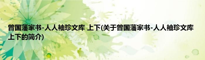 本文关于曾国藩家书-人人袖珍文库 上下的简介就讲解完毕,希望对大家有所帮助。