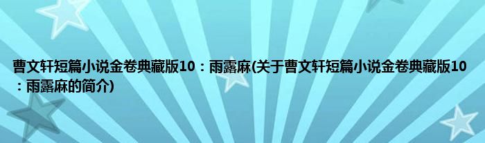 本文关于曹文轩短篇小说金卷典藏版10:雨露麻的简介就讲解完毕,希望对大家有所帮助。