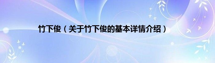 本文关于竹下俊的基本详情介绍就讲解完毕,希望对大家有所帮助。