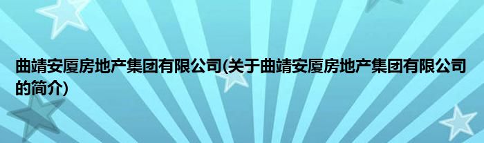 本文关于曲靖安厦房地产集团有限公司的简介就讲解完毕,希望对大家有所帮助。