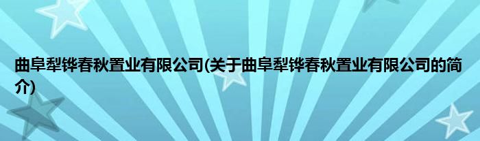 本文关于曲阜犁铧春秋置业有限公司的简介就讲解完毕,希望对大家有所帮助。