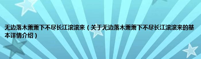 本文关于无边落木萧萧下不尽长江滚滚来的基本详情介绍就讲解完毕,希望对大家有所帮助。