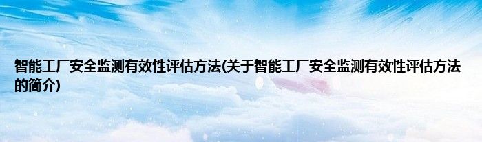 本文关于智能工厂安全监测有效性评估方法的简介就讲解完毕,希望对大家有所帮助。