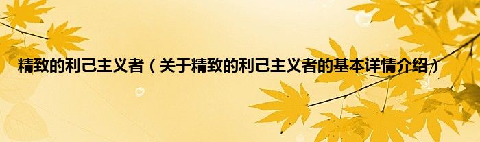 本文关于精致的利己主义者的基本详情介绍就讲解完毕,希望对大家有所帮助。