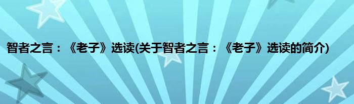 本文关于智者之言:《老子》选读的简介就讲解完毕,希望对大家有所帮助。