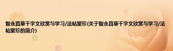 本文关于智永真草千字文欣赏与学习/法帖聚珍的简介就讲解完毕,希望对大家有所帮助。